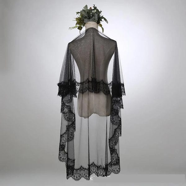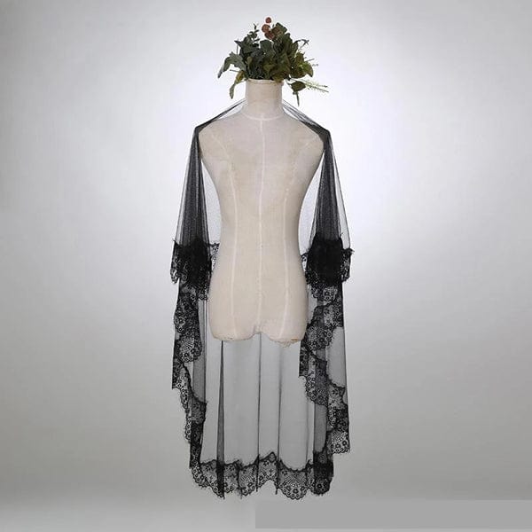 No bridal look is complete without a veil, and this dramatic black lace and tulle veil is a sight to behold!