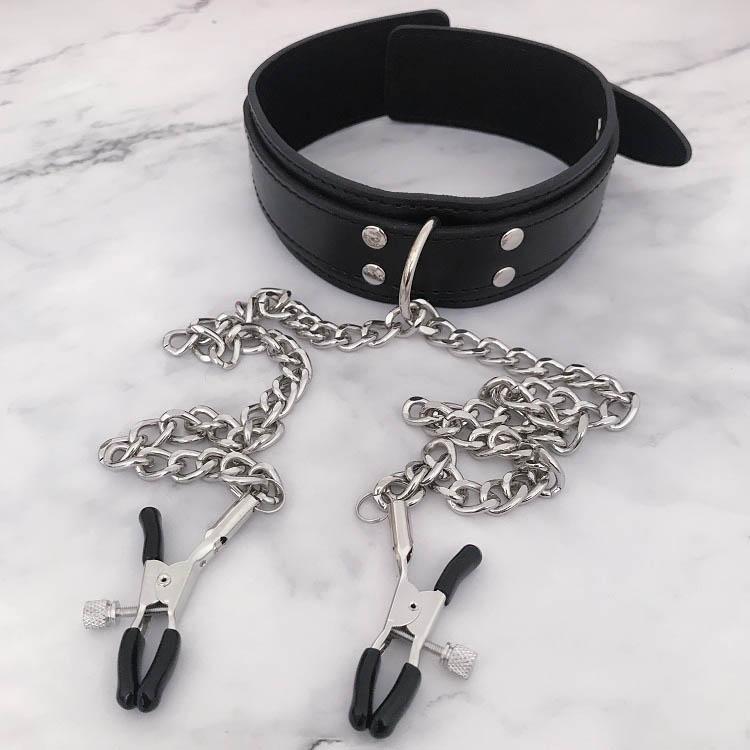 6pcs set: handcuffs + Ankle cuffs + collar nipple clamps + leash + 5m rope + spanking