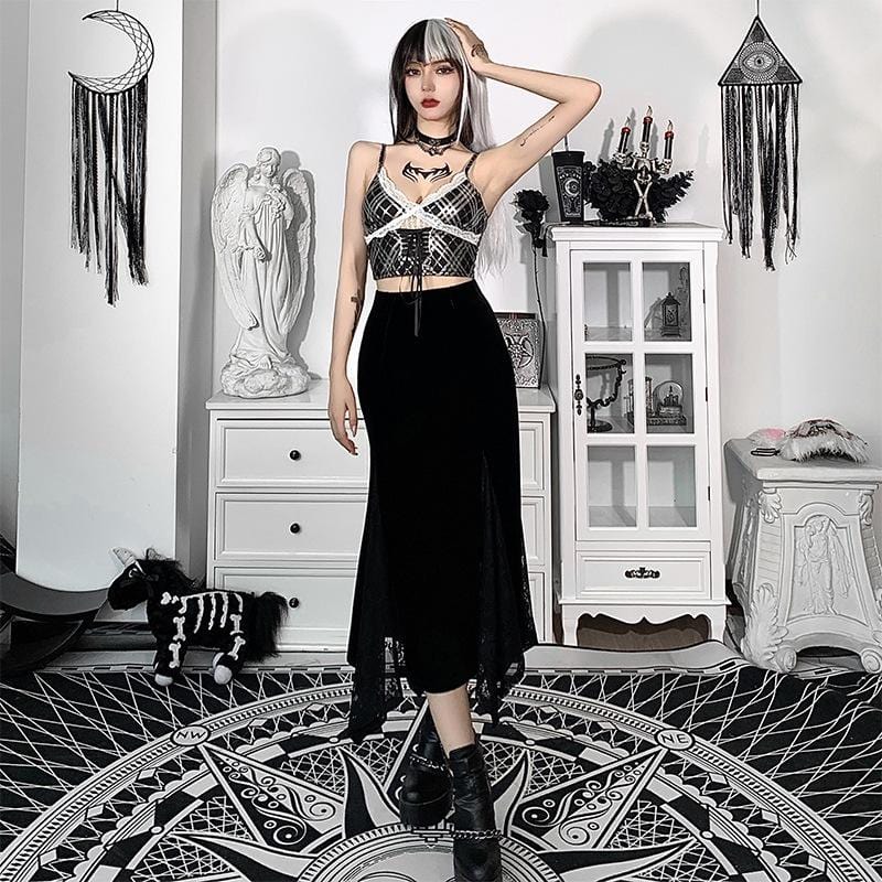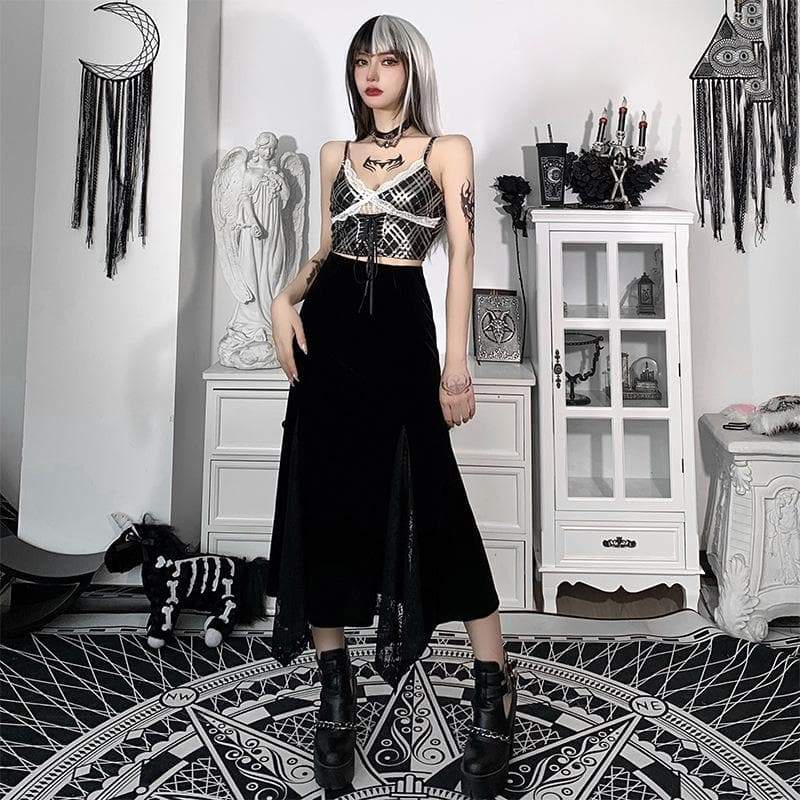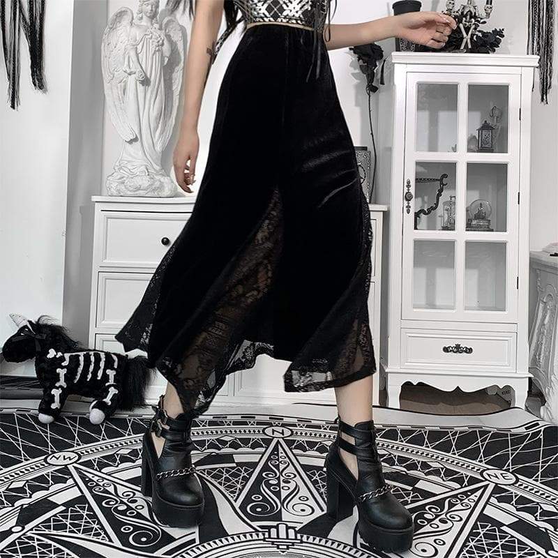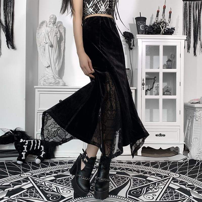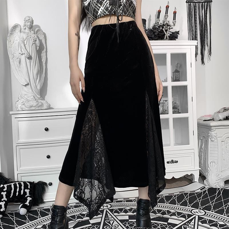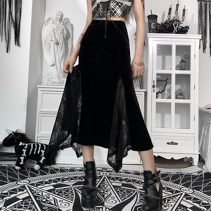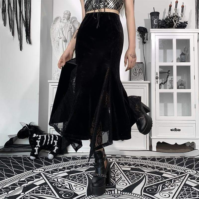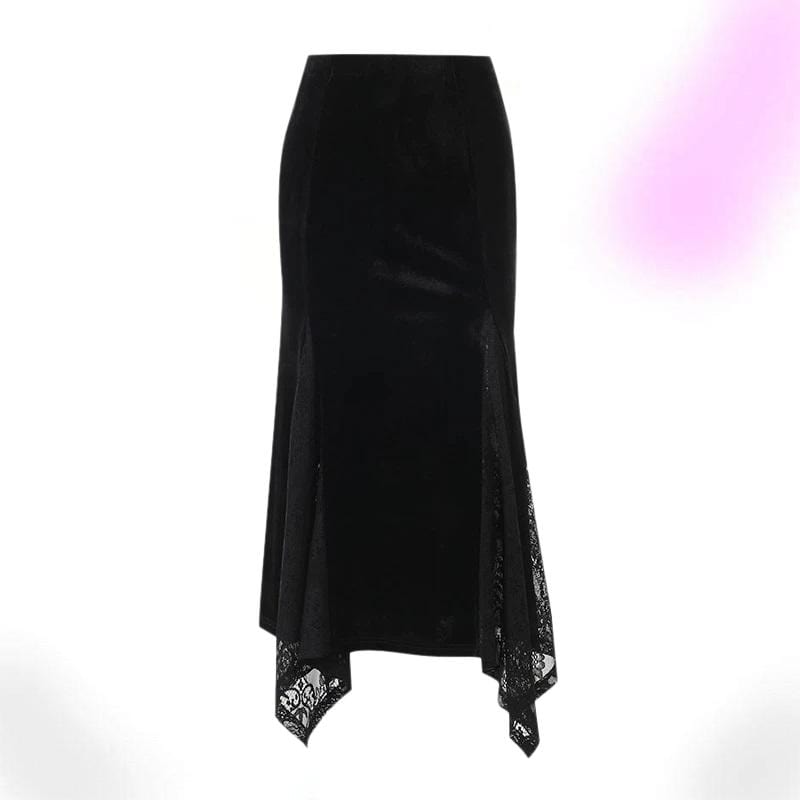 So elegant and absolutely oozing decadence, the Victoria Velvet Long Skirt has slits topped with?sexy floral lace with asymmetrical hems.? The luxe velvet has a gorgeous?mermaid silhouette?that brings retro vibes in an absolutely divinely dark shell.?