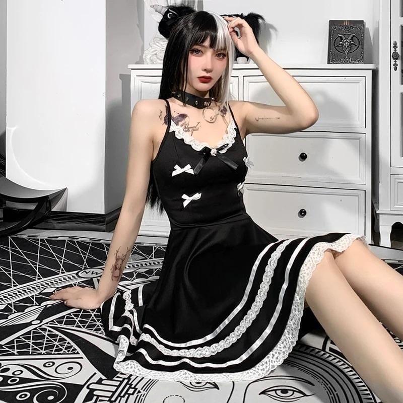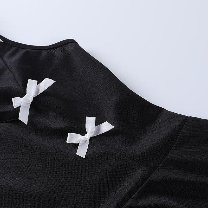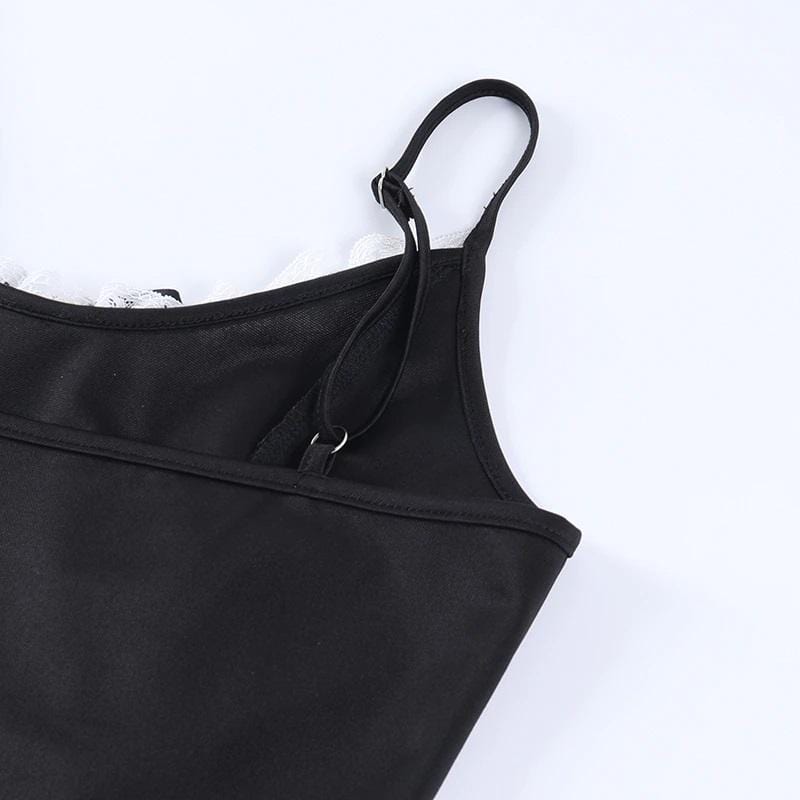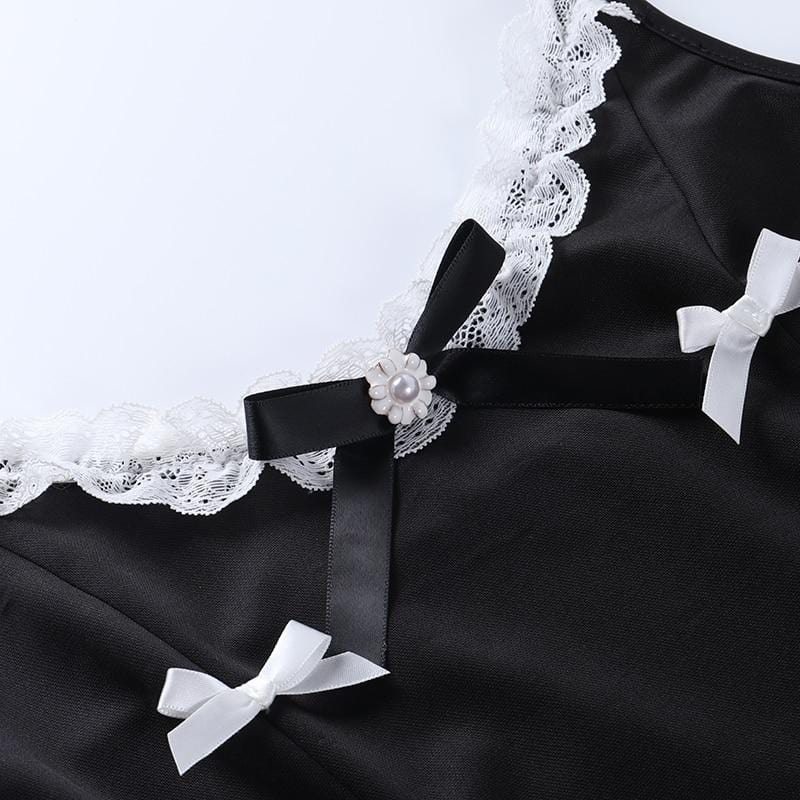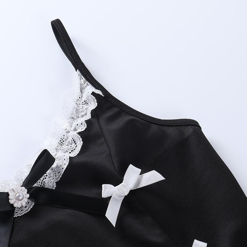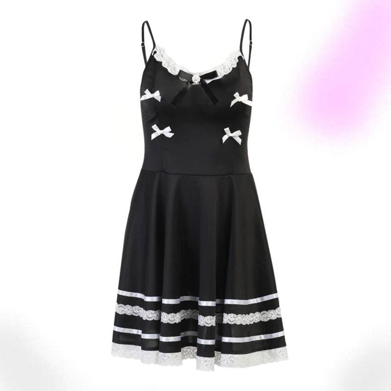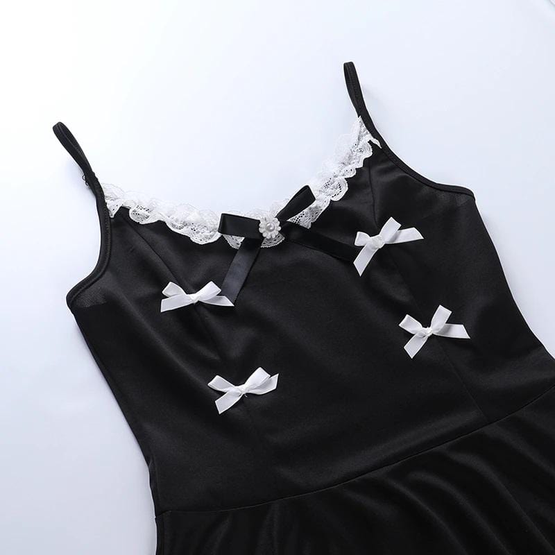 Dreamy and seductive, the Vintage Bow Lace Dress is your perfect partner for dusk or dawn. In a soft fabric for perfect comfort and fit. Featuring an open neck with thin adjustable shoulder straps and is adorned with contrasting black and white bows and lace trims. Versatile and easy to style - fully lined of course.
